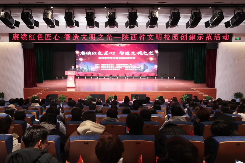 12月22日下午,由陕西省委文明办、陕西省委教育工委主办,咸阳市委文明办、我校承办,延安枣园革命旧址管理处、秦始皇帝陵博物院、咸阳纺织集团有限华体会、西安石油大学协办的“赓续红色匠心 智造文明之光”全省高职首场文明校园创建示范活动在我校举行。省委文明办创建处处长贺聪梅,咸阳市委文明办副主任李元军,省委教育工委宣传部干部向楠,校党委书记惠朝阳、党委副书记田昊出席活动。省委文明办及咸阳市委文明办相关人员,部分西安及驻咸高校、咸阳地区12所中小学的师生代表们参加了本次活动。