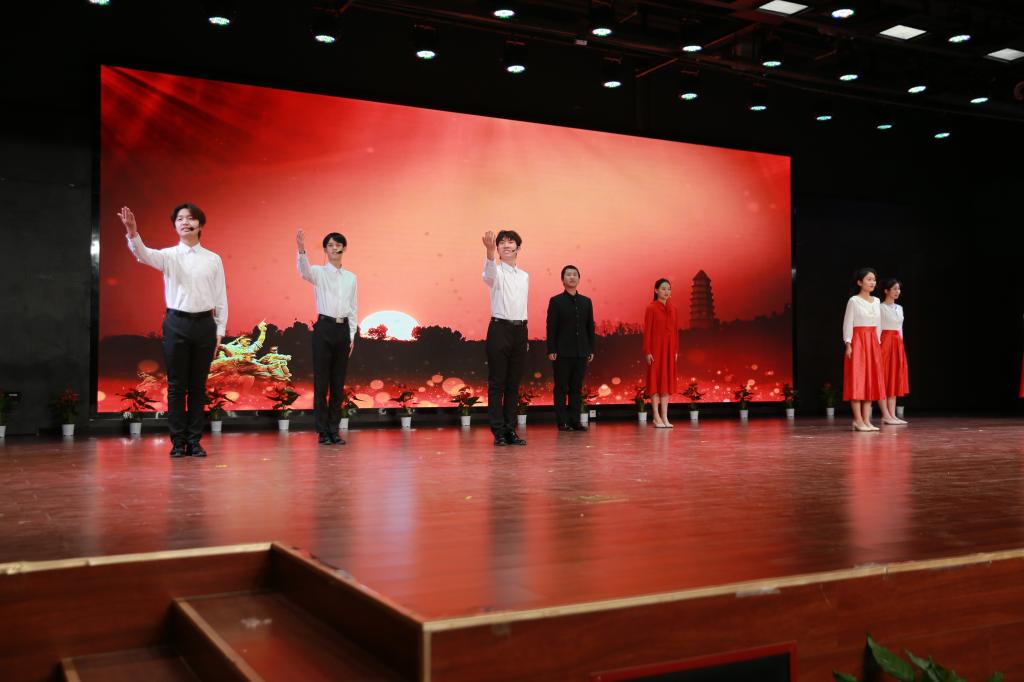 用艺术讲红色文化,在创作中接受精神洗礼。我校师生带来的红色文艺作品展演,以原创红色歌曲演唱、朗诵等艺术形式展现了学校“红色匠心”文化教育实践成果。最后,师生们将真挚浓烈的爱国之情、报国之志融入《我和我的祖国》的歌声中,为本次文明校园创建示范活动画下圆满句号。
