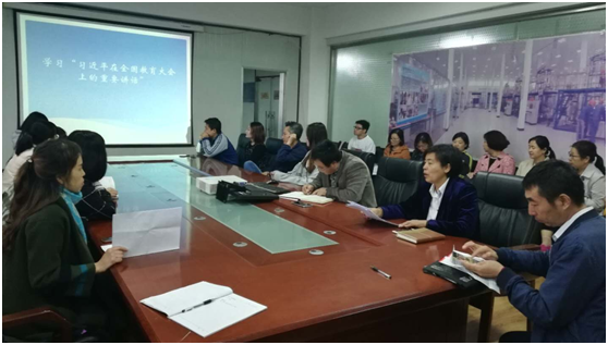 会上,贾书记领学了习近平在全国教育大会上发表的重要讲话, 她指出习近平总书记在全国教育大会上的讲话,思想深刻、内涵丰富,站在新时代党和国家事业发展全局的高度,深刻总结了党的十八大以来我国教育事业发展取得的显著成就,深入分析了教育工作面临的新形势新任务,科学回答了关系我国教育现代化的几个重大问题,对当前和今后一个时期教育工作做出了重大部署。