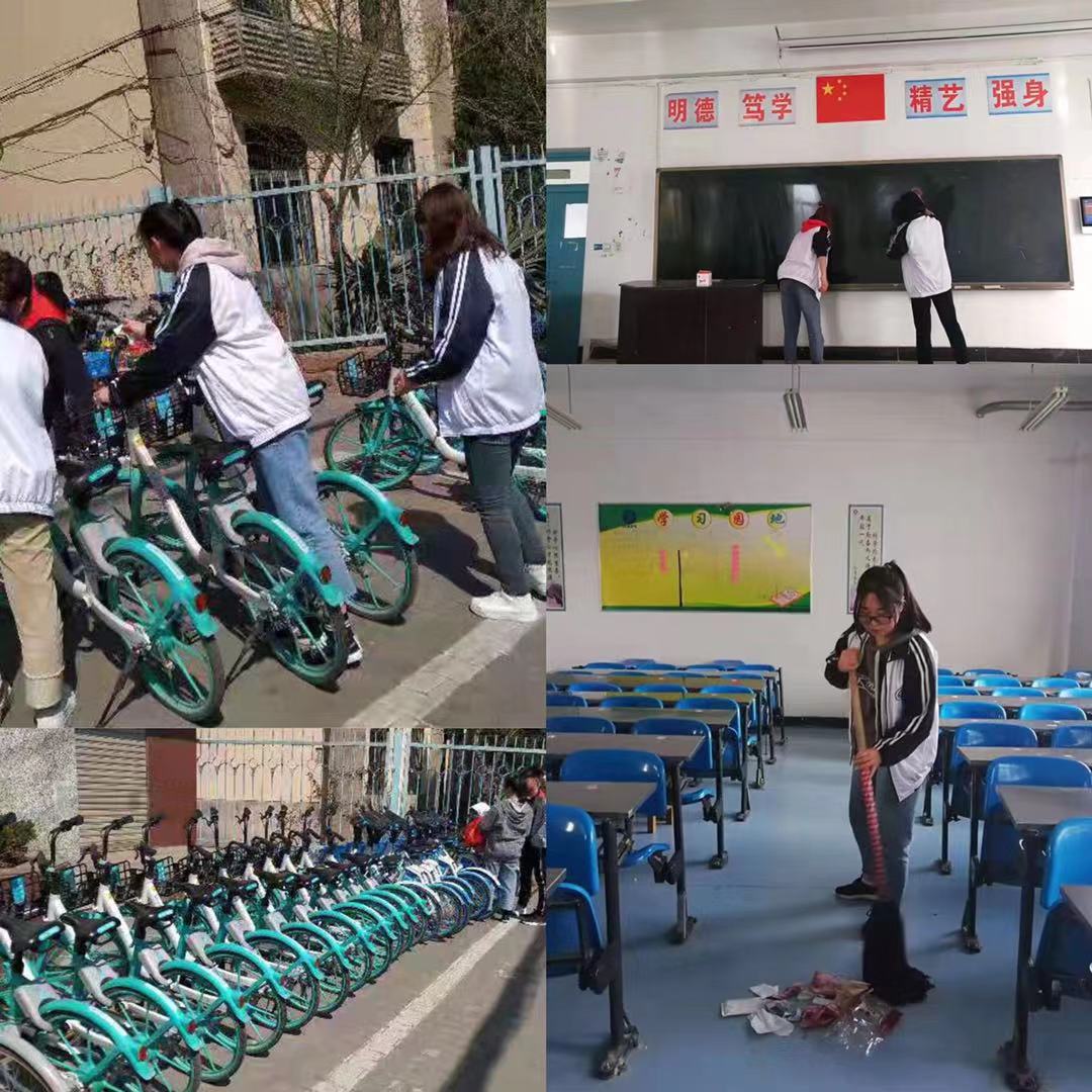 此次志愿活动由工商学院团总支学生会志愿者部、生活部及第53期入党积极分子90余人组成。活动分三组同时展开,一组志愿者对校园内以及学院南、北门摆放杂乱、存在污垢的共享单车进行重新摆放与清洁;另外两组志愿者分别对崇文东楼与崇明楼的部分教室进行整理与打扫,志愿者们将晚自习教室内摆放杂乱的桌椅板凳重新摆放规整,将教室内的垃圾、黑板上的污渍、桌兜里的杂物及一些小广告进行了清除。