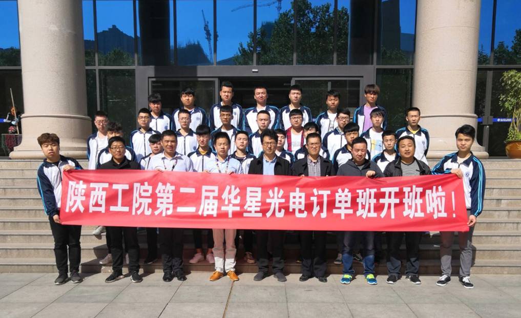数控学院党总支书记郝军致辞,对华星光电李经理一行表示热烈欢迎和衷心感谢,希望同学们珍惜机会认真学习,制定好职业规划,早日成长为优秀人才。华星光电李康经理对全体同学表示热烈祝贺,向同学们介绍了企业的发展现状和前景,并介绍了订单班的培养计划。订单班学生代表机电1705班田正雄发言,感谢校企双方提供了难得的学习机会,保证要好好学习,不辜负学校和企业的期望。会后全体订单班学生在精艺楼前合影留念。