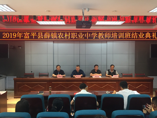 典礼上首先向全体学员颁发了培训结业证书,随后继续教育中心主任韩伟对本次培训工作做了总结发言,优秀学员王伟峰代表学员谈了培训心得体会。最后富平县薛镇农村职业中学校长陈宏斌对我院为培训班的努力工作给以充分肯定,并代表薛镇职中给我院赠送屏风表示感谢。