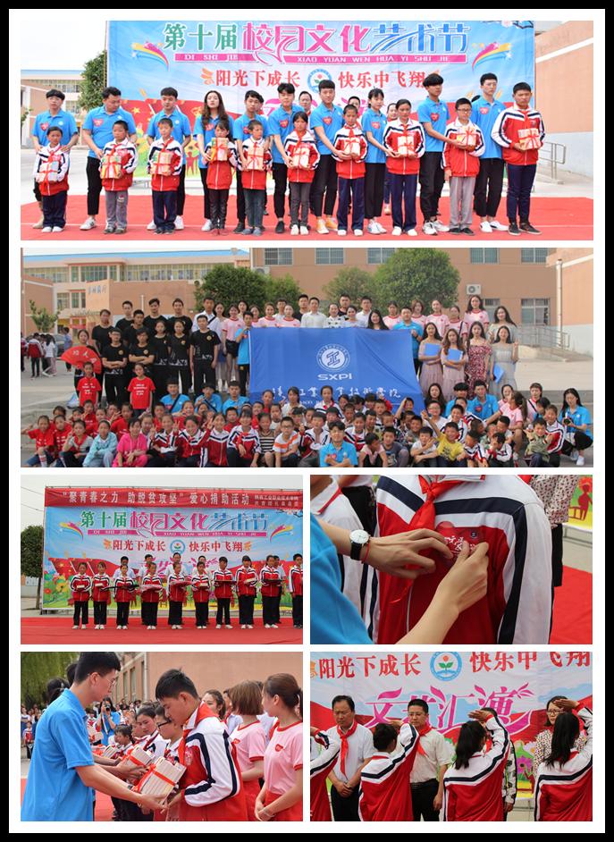 为了弘扬志愿精神,助力我省乡村振兴和脱贫攻坚,加强落实我院“双百工程”扶贫工作实效,增强青年学生社会责任感及担当意识,在第69个六一儿童节来临之际,由团委主办,信息工程学院承办的“聚青春之力助脱贫攻坚”爱心捐助活动,于5月31日下午在礼泉县南坊镇中心小学举行。共青团礼泉县委书记杨维维、县教育局扶贫办主任陈兵团,信息学院党总支书记闫军、学工办主任何瑾及辅导员代表、我院青年学生志愿者代表、南坊镇中心小学师生等300余人参与了此次爱心捐助活动。