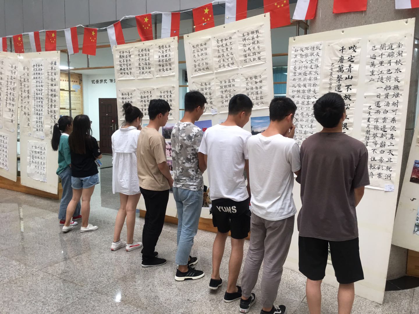 以丹青妙笔展示校园文化,以飘香翰墨传递真挚祝福。为了庆祝新中国成立七十周年,进一步传承和发扬中国书画文化,营造安全、和谐、舒适的宿舍环境,提升宿舍文化品位,学生处举办的第八届“宿舍文化·润泽”书法、绘画、摄影作品展,于6月3日在图书馆一楼大厅隆重开展。大学生艺术活动指导团的老师亲临现场参观指导。