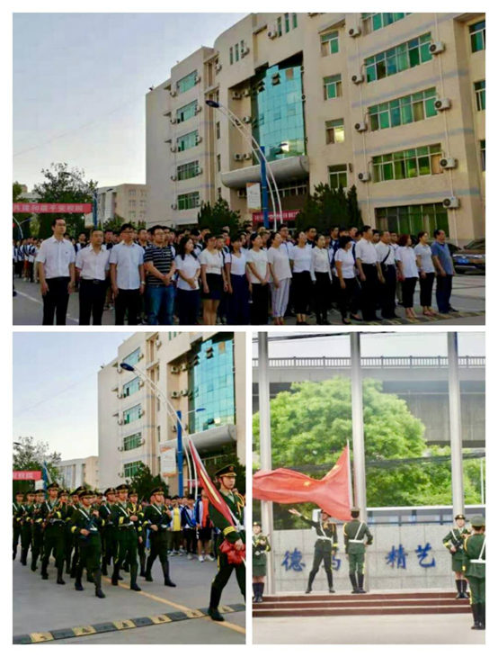 活动伊始,国旗护卫队迈着整齐划一、铿锵有力的步伐,昂首挺胸护送国旗入场。在场师生迎着朝阳庄严肃立,共唱国歌,目送五星红旗冉冉升起。
