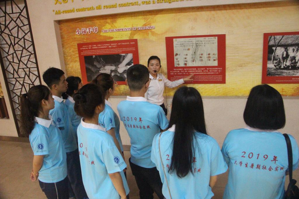 为深入贯彻落实我省大学生暑期三下乡“青春心向党,建功新时代”的要求及教育部思政司关于组织开展“小我融入大我,青春献给祖国”主题社会实践的文件精神,按照我院团委统一部署,财经与旅游学院积极筹划,组建了以辅导员和思政教师为指导老师的暑期社会实践团队,分别走访安徽小岗村、江苏华西村、陕西省蓝田县董岭村等三个具有代表性的改革先锋村。