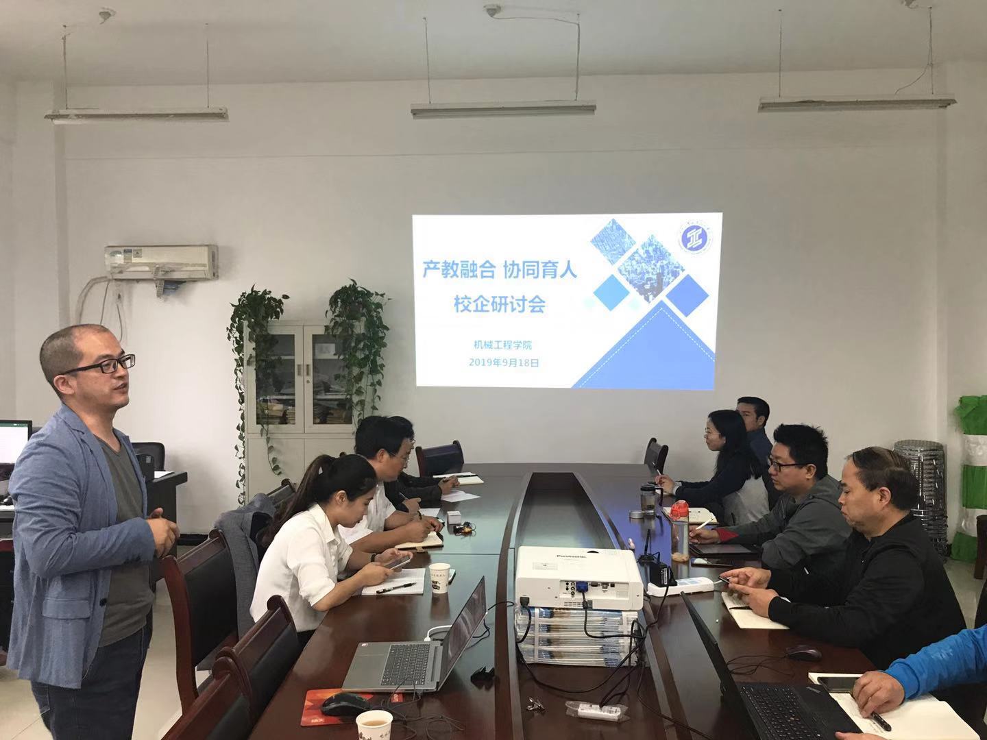 9月18日下午,机械工程学院召开“产教融合、协同育人”校企研讨会。本次研讨会邀请了苏州科茵斯智能科技有限华体会的总经理蔡志敏进行分享,机械工程学院院长赵明威、党总支书记苏宏志、副院长郭新玲、各专业带头人、教研室主任以及17年至今入职的全体青年教师参加会议。