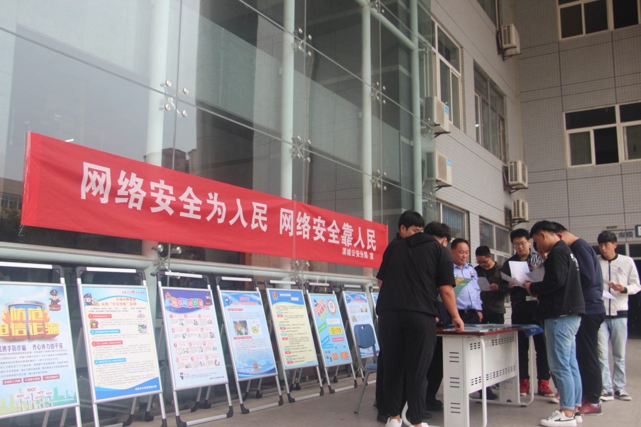 为了进一步提高防范电信诈骗的意识和能力,保障师生的财产安全,近日我院保卫处配合咸阳市渭城分局民警在学院崇文楼下开展“电信网络安全及反诈骗宣传”活动。
