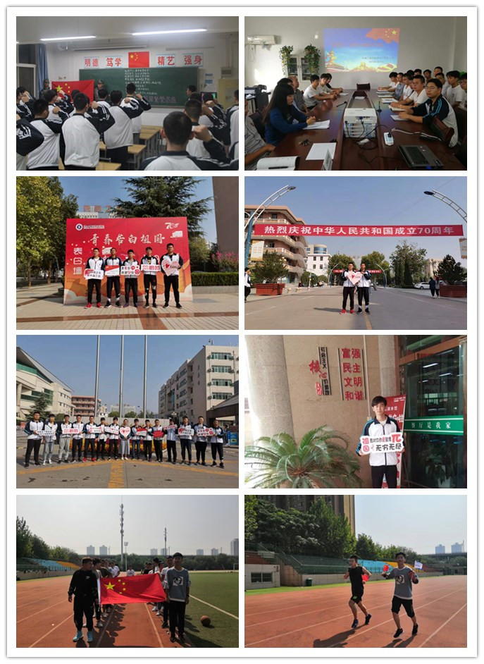 随后,支部开展了“我爱你,中国”主题党日系列活动。预备党员和积极分子代表在学院具有标志性建筑前以举牌的方式表达自己对祖国的热爱,并高呼“我爱你,中国!” 机制1805、1806班同学组织了“我爱你,中国!”70公里长跑接力活动,全班同学以接力跑的形式为祖国庆生,表达爱国爱党情怀,用铿锵有力的步伐跑出青春心向党的热血与热情。晚自习时间各班同学面向国旗组织宣誓活动,同学们用他们的誓言呐喊出对祖国的热爱和建功新时代的决心。
