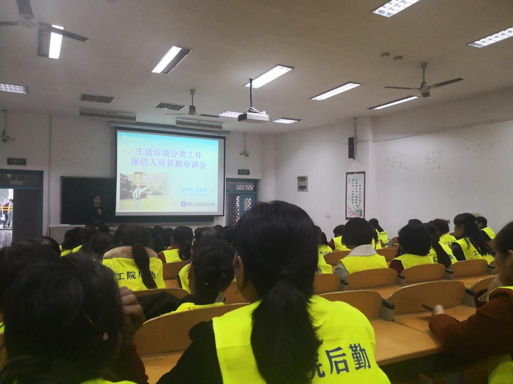 11月5日下午,我院在崇文西楼102教室为全体保洁人员举办垃圾分类工作首期培训会,让我院保洁人员快速了解垃圾分类在我国的发展过程,中央政策、咸阳市文件制度和考评办法,以及垃圾分类工作的具体规定和要求。本次培训会是依照《咸阳市城市生活垃圾分类工作考核暂行办法》的考核要求,更是为了保护环境、节约资源,把习近平总书记在2019年6月3日对垃圾分类工作的重要指示在我院落到实处的重要举措。培训会由后勤处物业管理科科长张联朋主讲,物业管理科全体人员一同参加了会议。