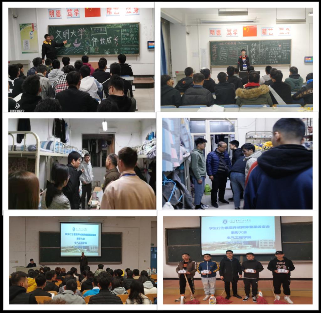 宿舍评优奖励,构建文明寝室。11月28日,电气学院组织学生会干部,大一、大二全体生活委员、舍长开展了星级宿舍评优奖励活动。通过表彰先进、树立典型,以点促面,以榜样模范的带动作用促进学院宿舍的整体风貌,也使学生深刻认识到有付出就有收获的道理。同时,把宿舍评优纳入到学生考核、班级考核中,通过制度规范强化学生自我监督、自我管理。