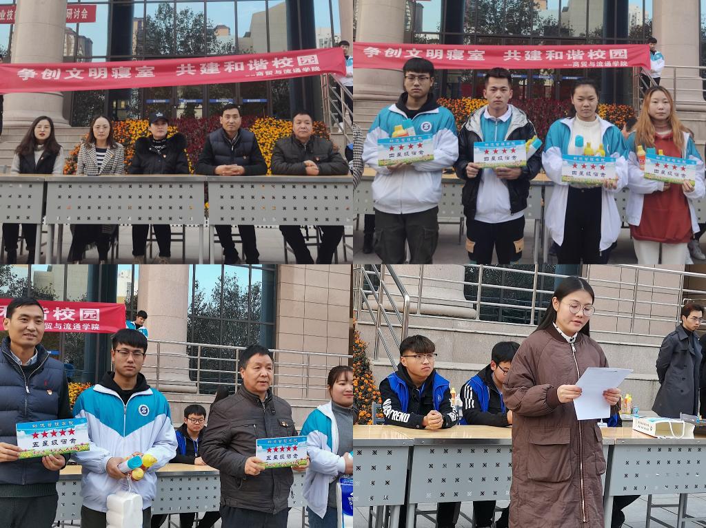 为创造整洁、文明、温馨的宿舍环境,树立文明新风,12月5日下午,商贸与流通学院在精艺楼前举办“创建文明宿舍,共建温馨校园”主题教育活动暨优秀宿舍表彰大会。学工办主任成志平、全体辅导员以及2018级、2019级各班生活委员、舍长共同参加活动。