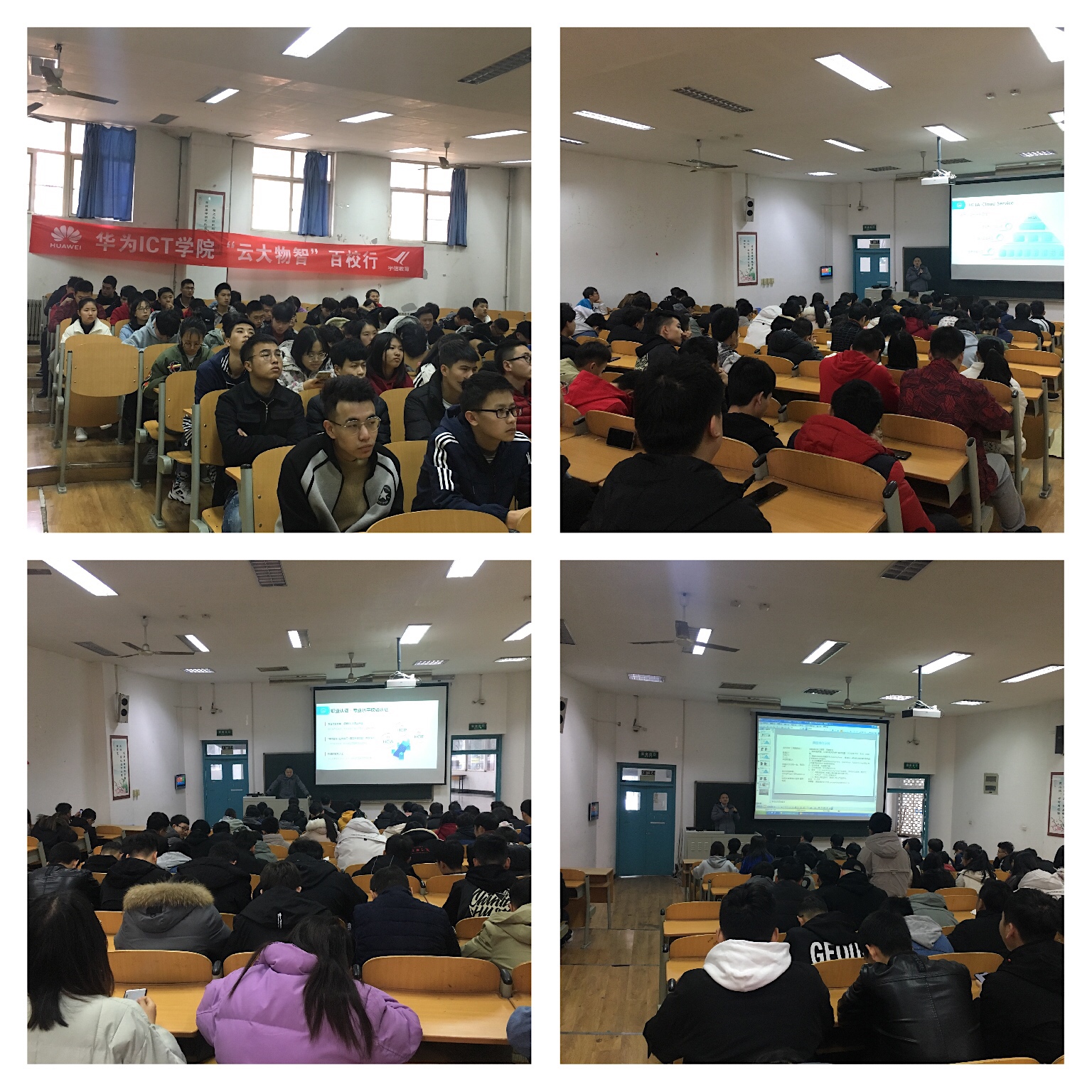 讲座中赵经理从云计算技术发展趋势、华为云解决方案介绍、华为云服务培训与认证三个方面展开。首先从云计算技术的发展背景、云时代IT发生了哪些变化、云计算和云服务的异同、云计算的技术发展介绍了云计算技术的发展概况。其次从公有云基础服务架构、华为云标准产品体系、计算服务-弹性云服务器(ECS)、计算服务-弹性伸缩服务(AS)、存储服务-云硬盘(EVS)、网络服务-弹性负载均衡(ELB)、云管理-云监控服务(CES)等方面详细论述了华为云的解决方案。最后从已发布的云服务认证、HCIA-Cloud Service、HCIP-Cloud Service Solutions Architect考试大纲等方面介绍了华为云服务的培训与认证程序。此次讲座的成功举办,对于同学们更加深入的了解云计算技术的发展状况和前沿信息,具有切实的意义。