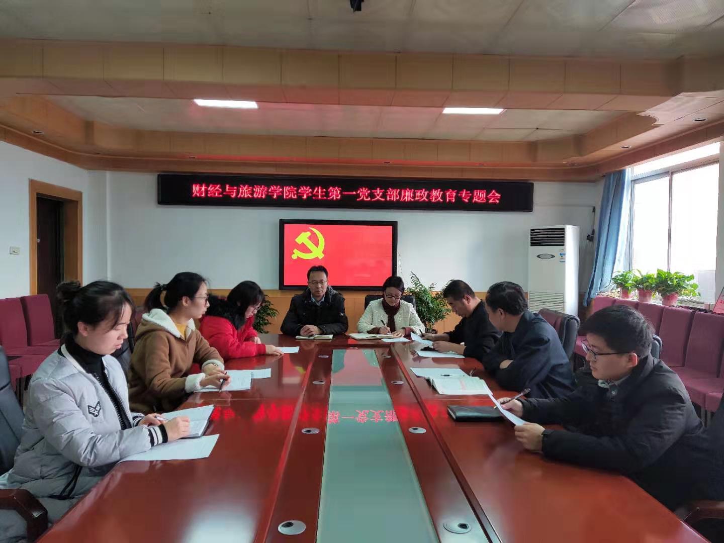 根据财经与旅游学院党总支工作部署,12月20日上午,财经与旅游学院学生第一党支部在学院格物楼408会议室召开廉政教育专题会。支部全体党员、辅导员参会学习,党总支书记孙继龙、副书记吴姗娜到会督导。