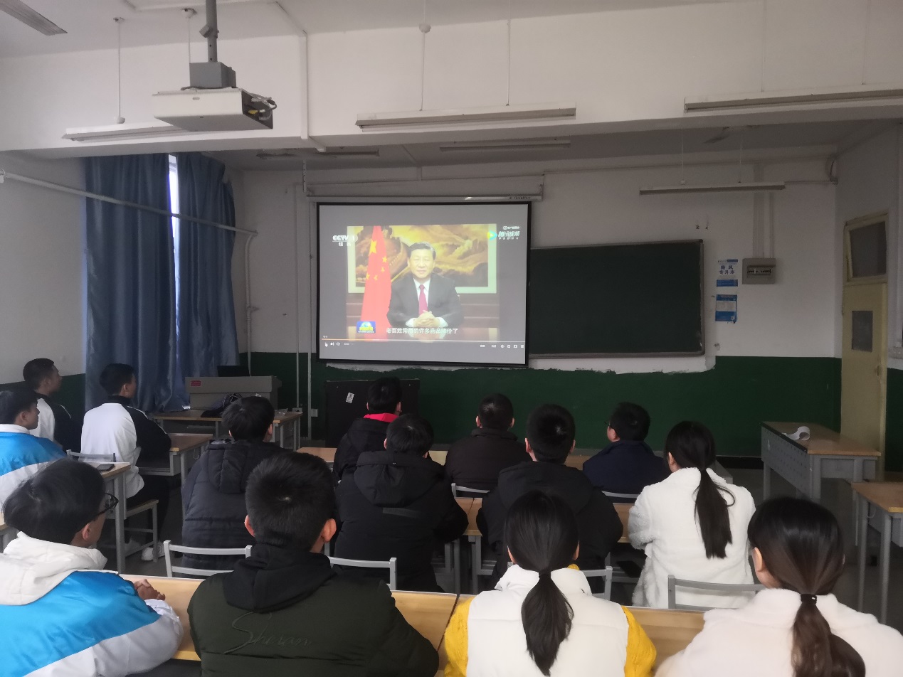 1月3日下午,汽车工程学院学生第一、第二党支部在崇文北楼402教室观看了习近平主席新年贺词。