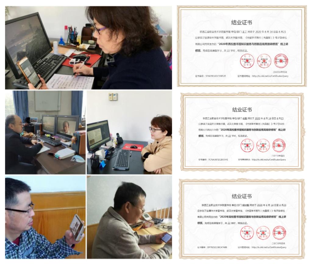日前,一张张加盖清华大学图书馆、武汉大学图书馆及中国知网红色印章的结业证书,陆续拿到陕西工院图书馆馆员的手中,为紧锣密鼓地开展线上线下“双线”服务的馆员们注入更多专业服务的活力与信心。