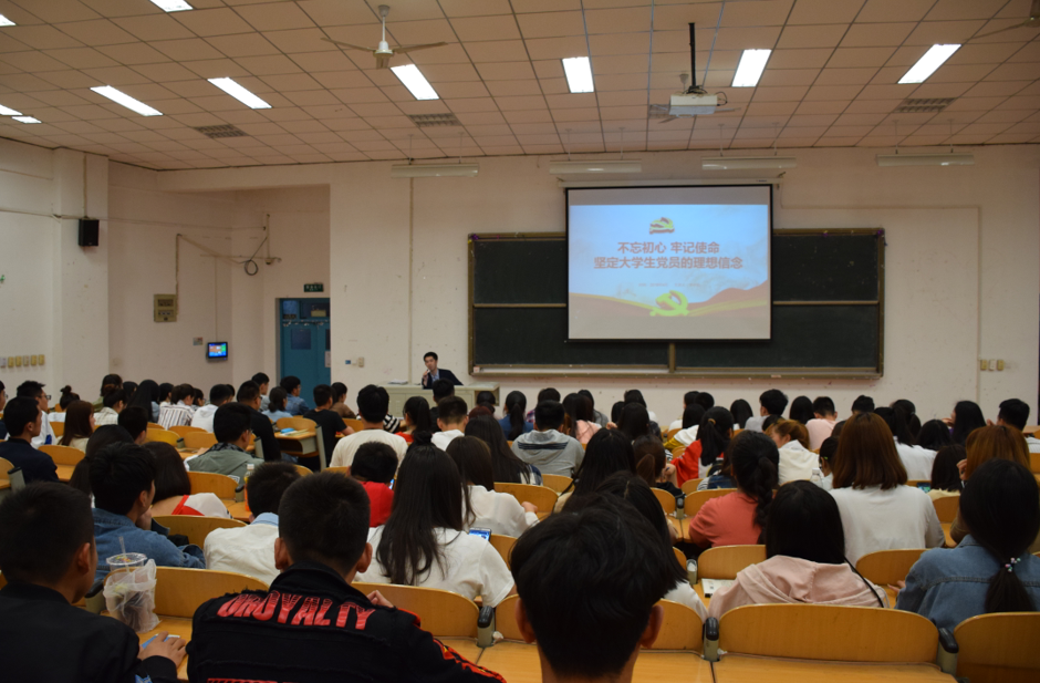 4月27日晚,信息学院辅导员李小旭在崇文西楼302以“不忘初心.牢记使命,坚定大学生党员的理想信念”为主题进行了第一次党课讲授。新入职专任教师、党员、第六期发展对象、入党积极分子、学生会干部等200余人参加了党课学习。