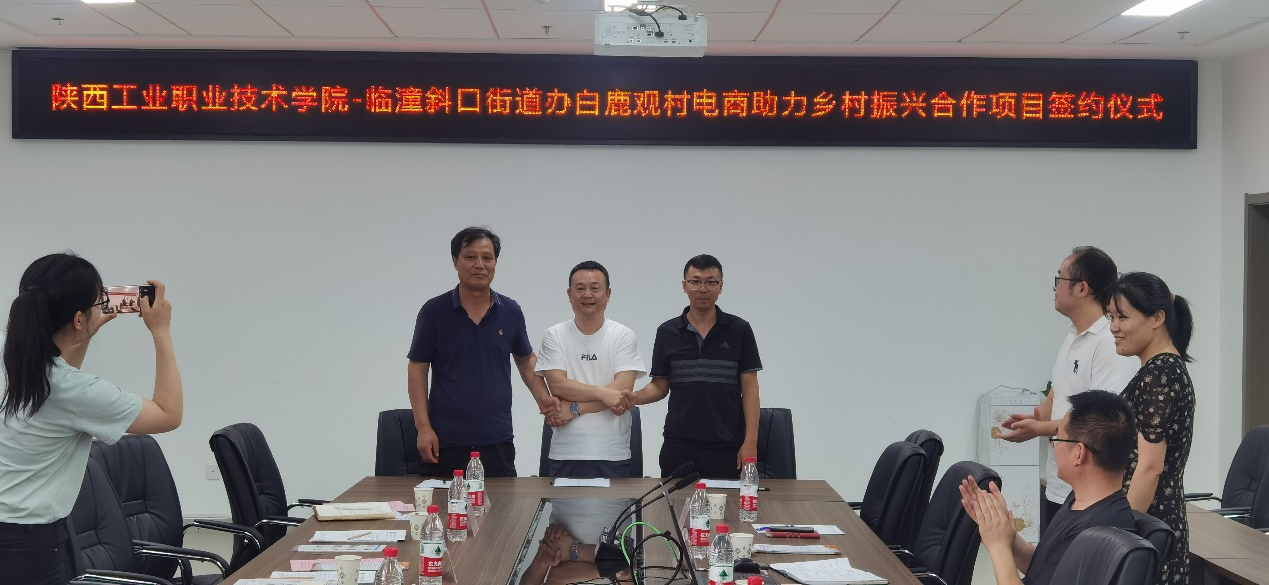 为了积极响应国家乡村振兴战略号召、致力于区域经济发展,7月11日上午,在陕西工业职业技术学院经开校区崇理楼B04会议室,陕西工业职业技术学院商贸与流通学院、临潼斜口街道办白鹿观村和西安今成电子商务有限华体会达成一致,“校、企、政”三方合作,运用新媒体助力乡村振兴发展,并举行签约仪式。