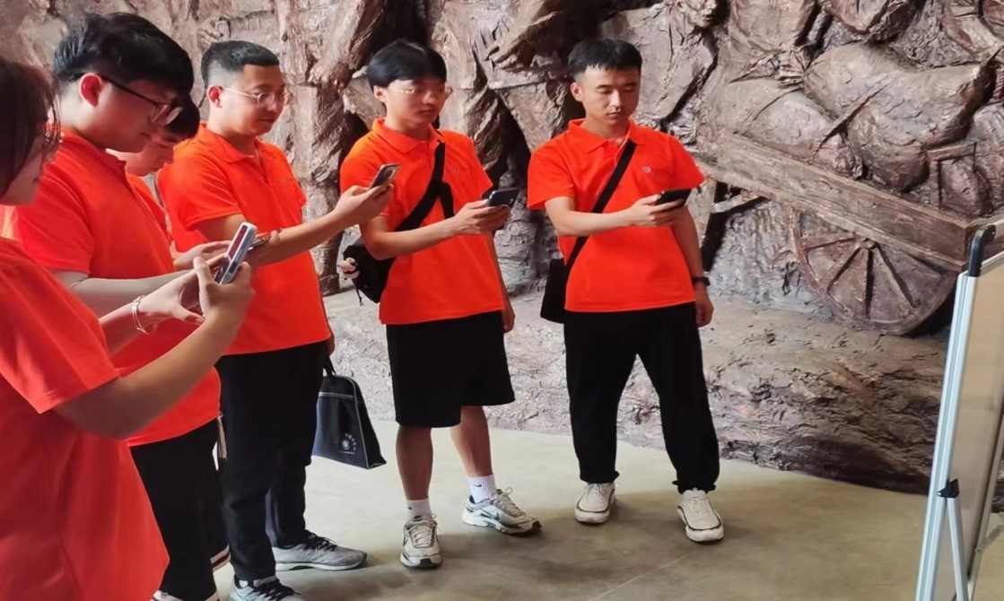 图上为实践团全体成员通过扫描二维码学习革命历程