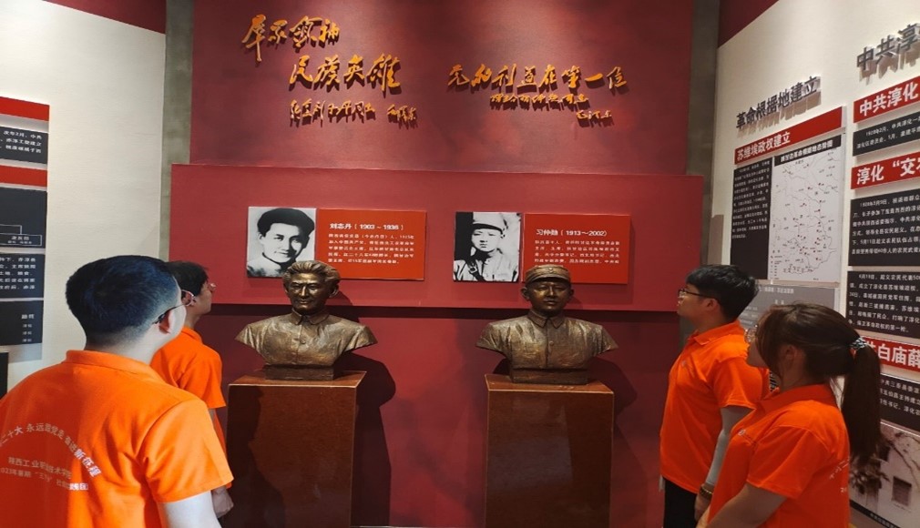 参观过程中,首先,进门映入眼帘的就是三位烈士坚毅不屈的铜像,右侧紧跟着的是一位位浴血奋战的勇士们,左侧是老百姓紧握着烈士们的手,表达对各位烈士的感谢。继续跟随指导老师的脚步参观展馆、浏览历史照片,聆听讲解了解革命根据地,深入体会革命历程的艰辛淬炼灵魂,坚定初心。