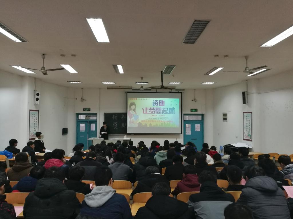 为加大学生资助宣传力度,1月16日下午,材料工程学院2018年寒假学生资助政策宣传服务团队动员培训会在崇文西楼103召开。经过前期的积极动员,材料工程学院组织90余名获奖受助学生担任“学生资助宣传大使”,成立了20余支资助政策宣传服务团队。