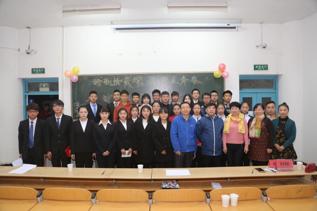 12月5日下午,由团委主办,工商管理学院承办的陕西工院“诗歌情谊深·愿党永青春”诗歌朗诵大赛决赛在崇文西楼举行,王金省、钟晓书、刘刚、袁夏莹和郭晓莹应邀担任评委,近200名师生参加了本次活动。