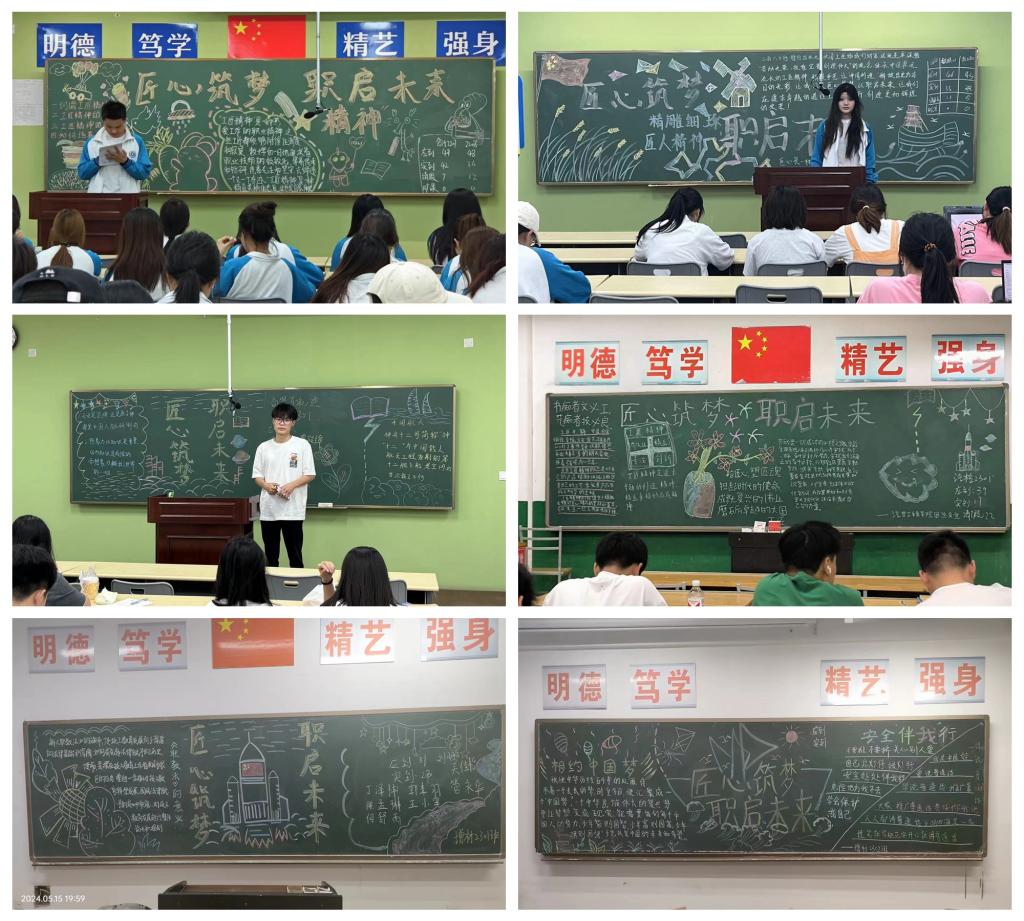 为深入学习贯彻习近平新时代中国特色社会主义思想,宣传贯彻党的二十大精神和习近平总书记关于职业教育的重要指示批示精神,引导广大职业院校团员青年增强精益求精的工匠精神、锤炼技能本领争当能工巧匠、大国工匠,奋力书写为中国式现代化挺膺担当的青春篇章。根据《教育部等十部门关于办好2024年职业教育活动周的通知》及学校要求,5月15日晚自习,校团委制定活动方案,在各二级学院团总支精心组织策划下,全校各班团支部开展了“匠心筑梦 职启未来”主题团日活动。