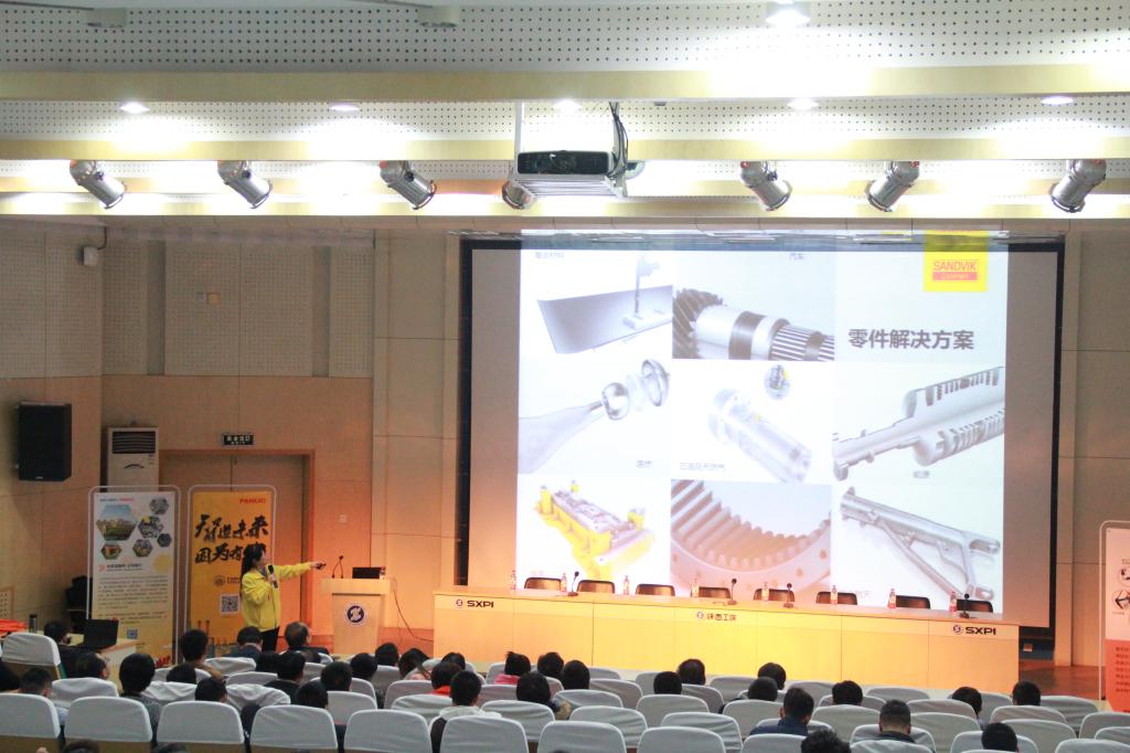 FANUC华体会技术总监候长合介绍了目前工业机器人、数控机床、测量技术的应用和未来发展趋势。他向师生们展示了一幅未来智能制造的蓝图,并详细讲述了工业4.0、中国制造2025的发展理念、构架;同时,通过展示工业发展不同阶段对技术性人才能力要求的特征,介绍了现代工厂用人要求及智能制造业中数控、机电等相关工作岗位以及其要求并展示了智能工厂环境。雷尼绍华体会工程师作了编码器研发制造、在线测量、3D打印等先进前沿技术的报告;山特维克华体会工程师主要作了刀具制造、快速换刀、减震刀具、云端刀具数据管理的先进技术报告。FANUC教育合作部经理高志国工程师从技术、设备、技能、素质等角度讲述了他眼中的“工匠精神”,对我们尚在求学中的“未来职业人”提出了期望。