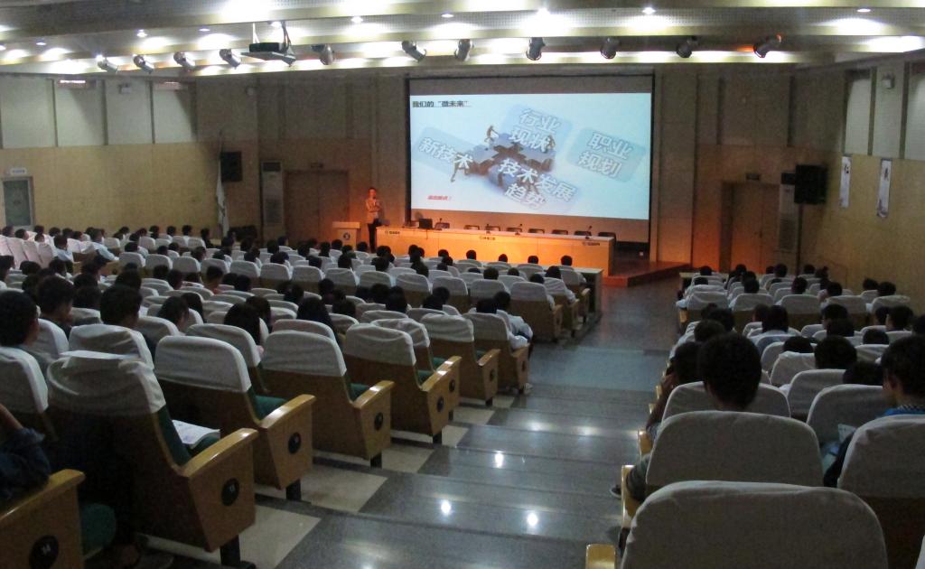 10月18日下午,由校企合作处主办,信息工程学院承办的新一期文化大讲堂在学术会堂举行,中软国际西安中卓信息技术有限华体会ETC技术总监张大璐应邀为信息学院400余名学生作“微世界.大展望”的专题报告。信息学院党总支书记闫军主持报告会。