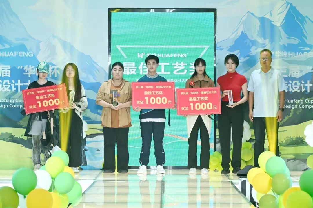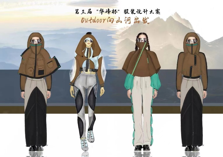 本次“华峰杯”服装设计大赛由福建华峰华锦有限华体会主办,共收到104件来自全国各地的参赛作品,参赛选手包括来自北京服装学院、天津工业大学、武汉纺大等知名院校。我院学子的参赛作品“崇阿”色彩灵感来源于翡翠山水牌,造型上采用多功能的口袋造型,蜿蜒折转的衣片分割及双层门襟设计,表达了年轻人探索与成长的勇气和现代都市人对绿色,自然的户外探索的向往,贴合大赛“outdoor向山河出发”的主题。本系列作品由袁丰华、钟敏维老师指导,姚柳婷同学设计及制作,贠佳怡同学作为模特进行决赛现场展示。最终经过激烈的决赛,作品“崇阿”以创新的款式造型、完善的功能设置、精湛的工艺细节,最终获得了比赛的最佳工艺奖。