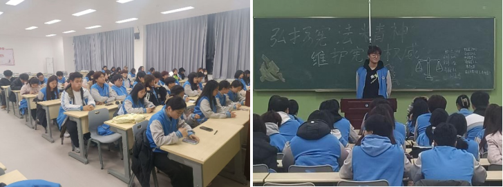 本次班会紧扣“弘扬宪法精神,维护宪法权威”这一主题,由各班班主任负责组织实施。活动以学习宪法内容、探讨宪法意义、分享宪法精神为主线,全面提升学生的宪法意识和法治素养,为培育新时代法治青年奠定坚实基础。各班通过观看宪法宣传视频、分享经典案例等环节,引导学生直观认识宪法作为国家根本大法的重要性和权威性。在学生代表的分享环节,同学们踊跃发言,结合实际生活谈体会、讲感悟,表达了对宪法精神的深刻理解和对法治理念的认同。班主任们趁此机会为学生深入解析宪法精神,并鼓励大家在日常学习和生活中自觉尊崇宪法、遵守法律、践行法治理念。此外,学院还积极动员全体学生登录青少年普法网,参与“学宪法、讲宪法”活动和“宪法卫士”网络活动,完成相关任务,确保宪法学习扎实落地。