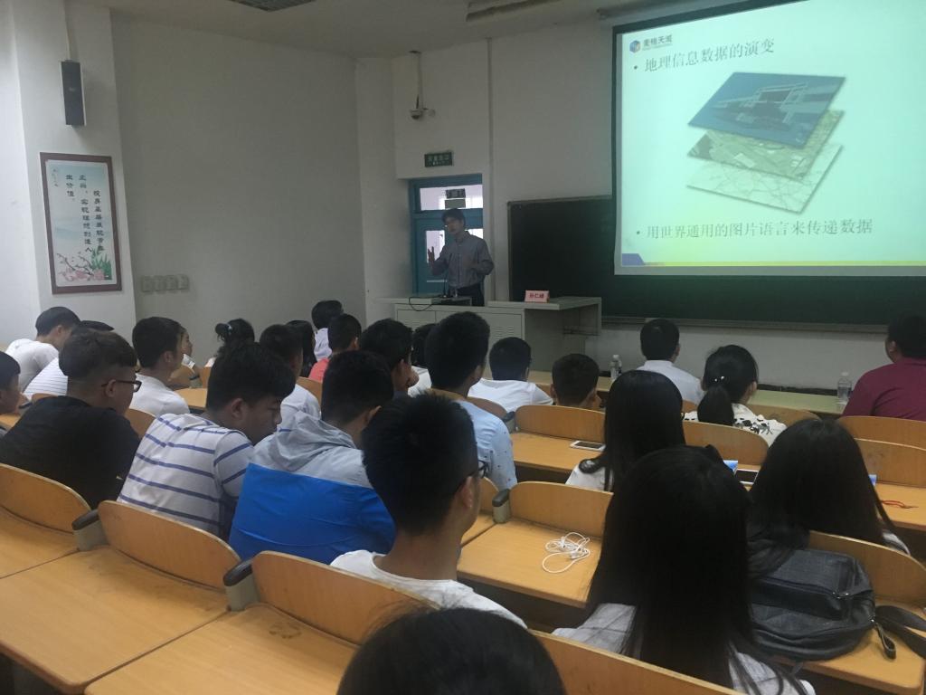 5月3日下午,北京麦格天渱科技发展有限华体会副总孙仁峰做客文化大讲堂,为广大师生做题为《空间地理信息产业发展及就业面临的挑战与机遇》的精彩讲座。校企合作处副处长王化冰、土木学院学工办主任韩二豹及土木学院200余名学生到场听讲。讲座由韩二豹主持。