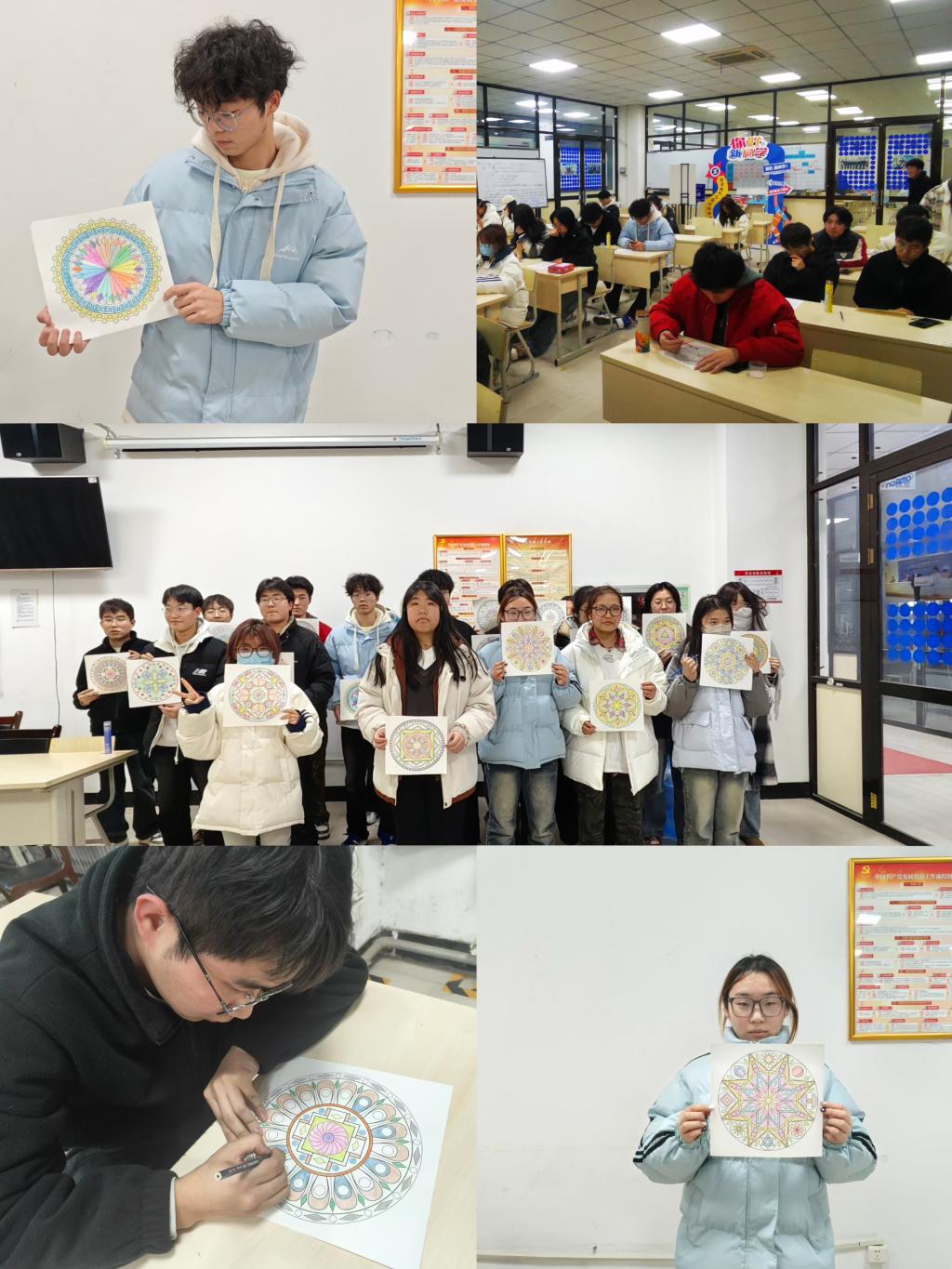 为加强朋辈之间的心理支持与互助,提升同学们的心理健康意识和自我认知能力,结合我为同学做实事——《成长路上,“友”你同行朋辈心理互助项目》开展情况,12月11日下午,电气学院在行知楼A欧姆龙教室成功举办曼陀罗绘画活动。