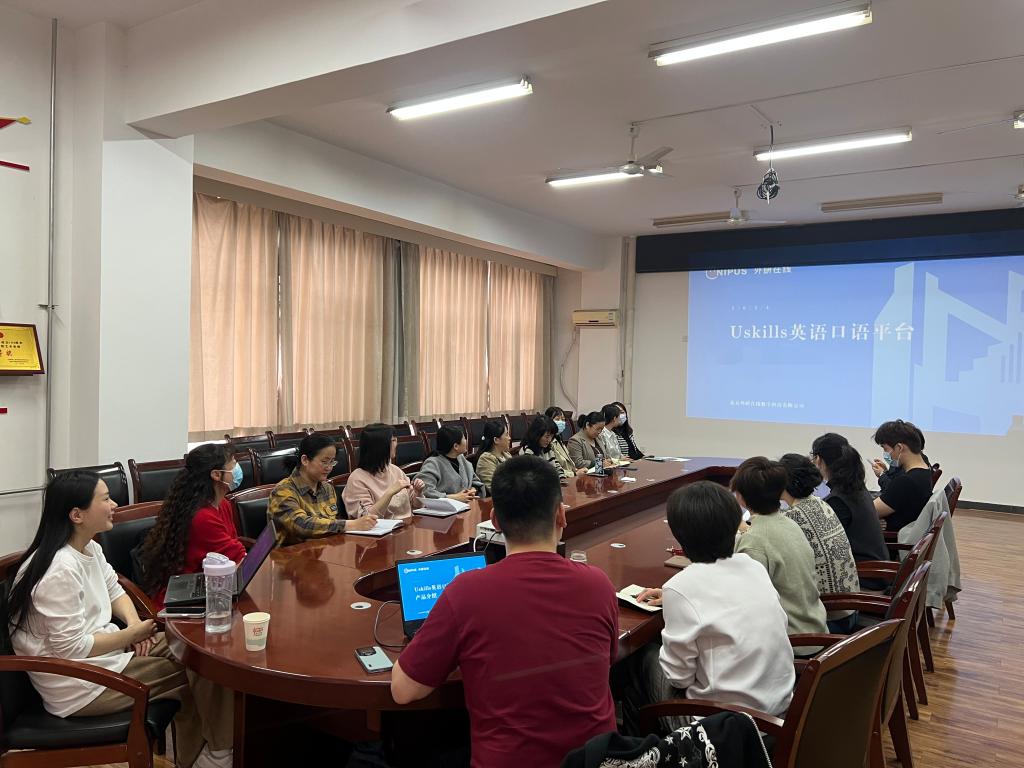 此次活动邀请了外研社技术专家,与公共英语教师进行英语数智化教学改革交流。活动中,外研社以Uskill职业技能实训英语口语平台为例进行了技术讲解,分享了前沿教学理念,集中演示英语AI语伴、AI评阅、行业课程等多项内容的教学运用,为教师们探索公共英语教学改革,实现精准教学提供了新的思路。教师们兴趣盎然,积极参与,就如何借助人工智能技术为学生构建沉浸式英语学习环境,提升学生语言运用能力与嘉宾展开热烈讨论,同时在平台上进行了模拟实操体验,达成了活学活用,学以致用的成效。