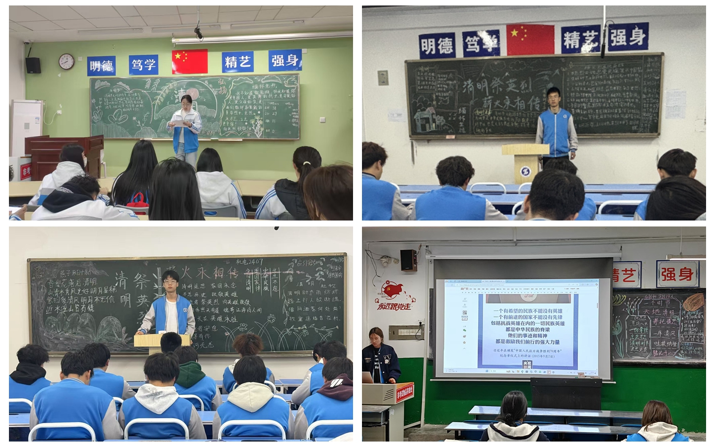 为进一步激发团员青年的爱国主义情怀,厚植家国情怀,增强奋斗精神,充分发挥中华传统节日的育人作用,通过追思慎远、缅怀英烈,校团委制定活动方案,全校各班团支部于4月2日晚自习在各班教室开展了“清明祭英烈,薪火永相传”主题团日活动。