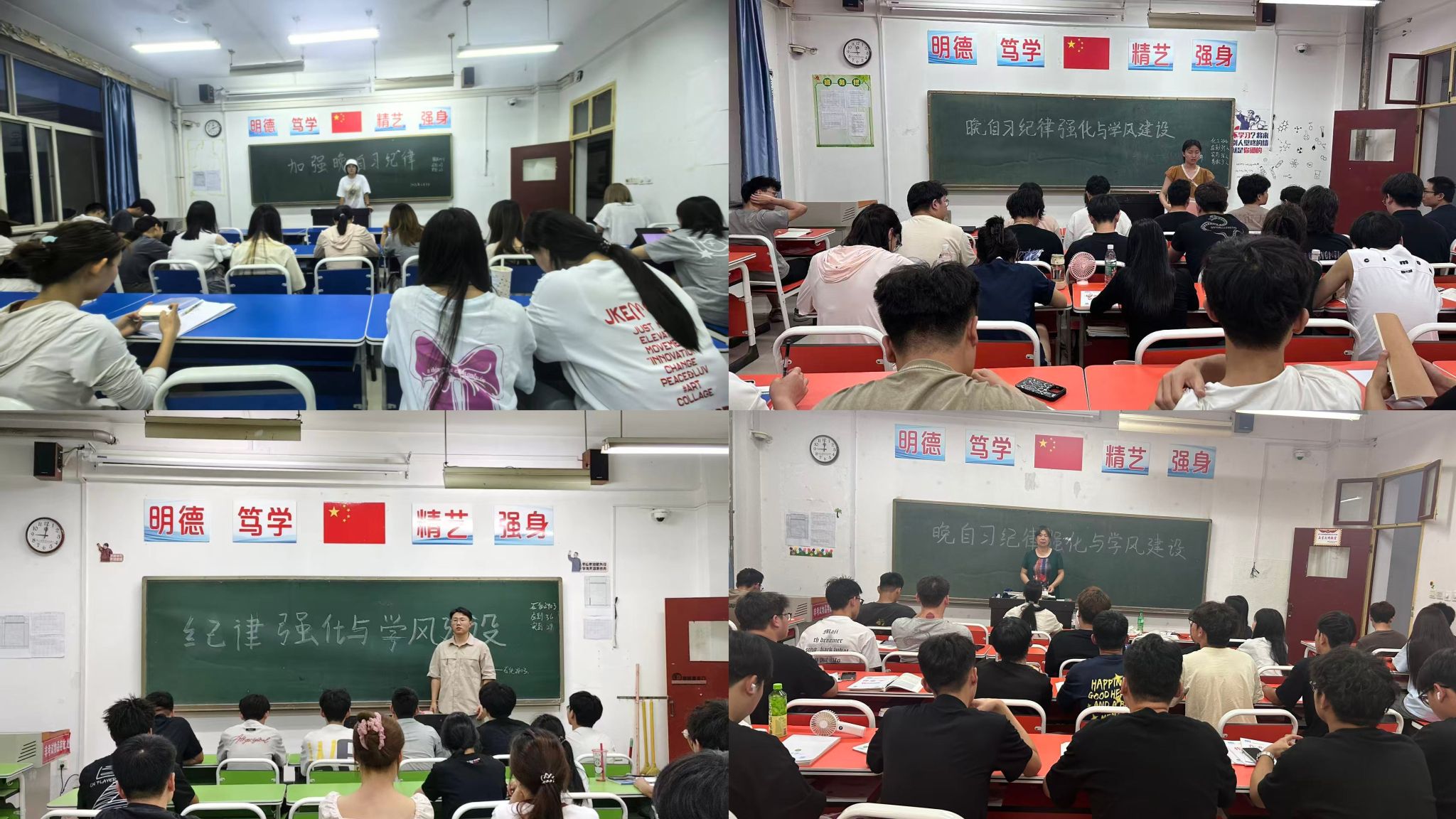 为助力期末备考,营造良好学习氛围,规范学生晚自习行为,6月8日晚自习,化工与纺织服装学院各班级教室热闹非凡,一场“强化晚自习纪律,共筑优良学风”主题班会正在火热开展。
