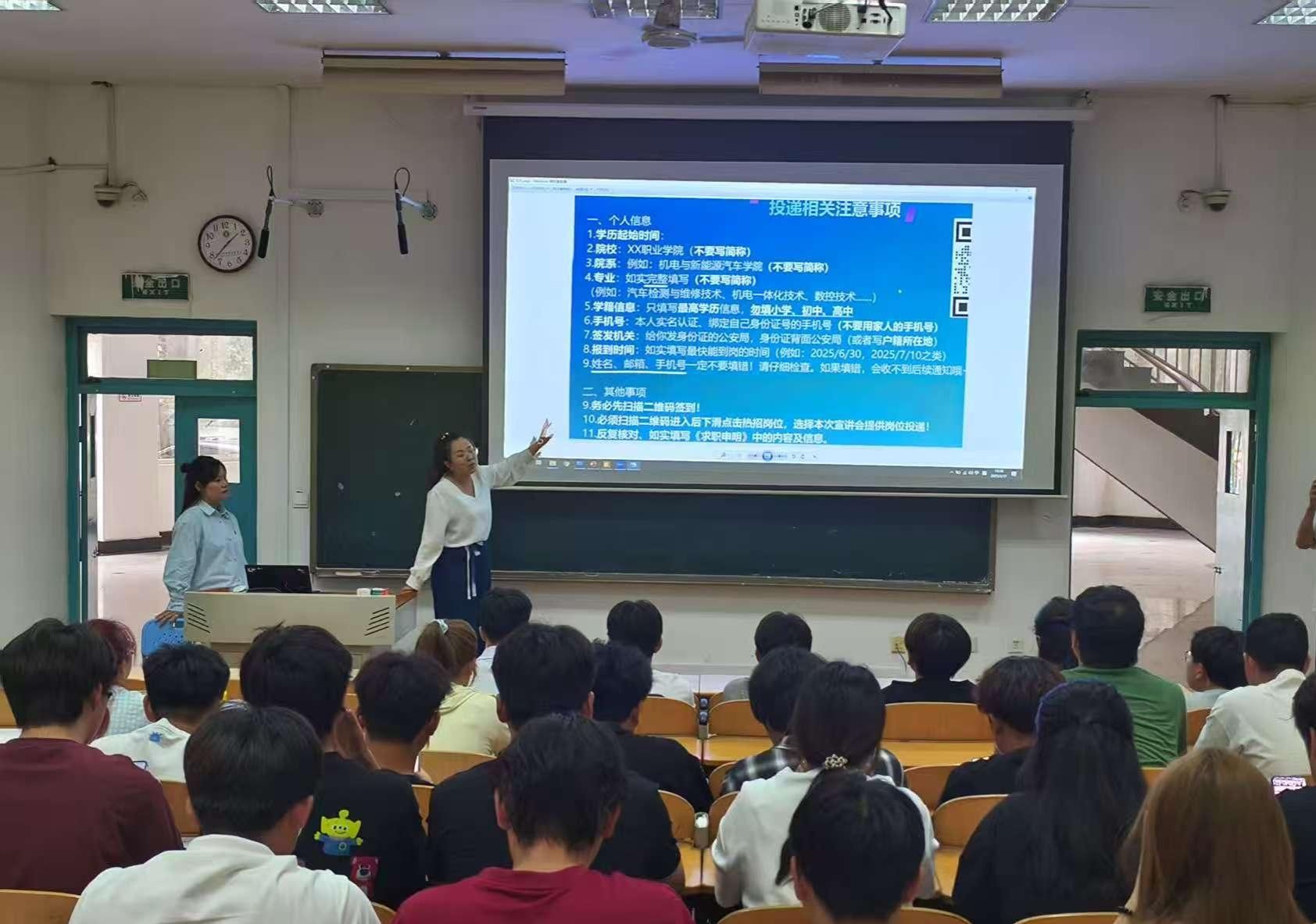 招聘岗位涵盖汽车工程、电池研发、生产管理、质量控制等多个领域的岗位,充分满足了不同方向学生的就业需求。招聘人员针对每个岗位的职责、任职要求以及职业发展路径进行了详细解读,并与学生们进行了深的互动交流,耐心解答了学生们关于薪资待遇、工作环境、培训体系等方面的疑问。
