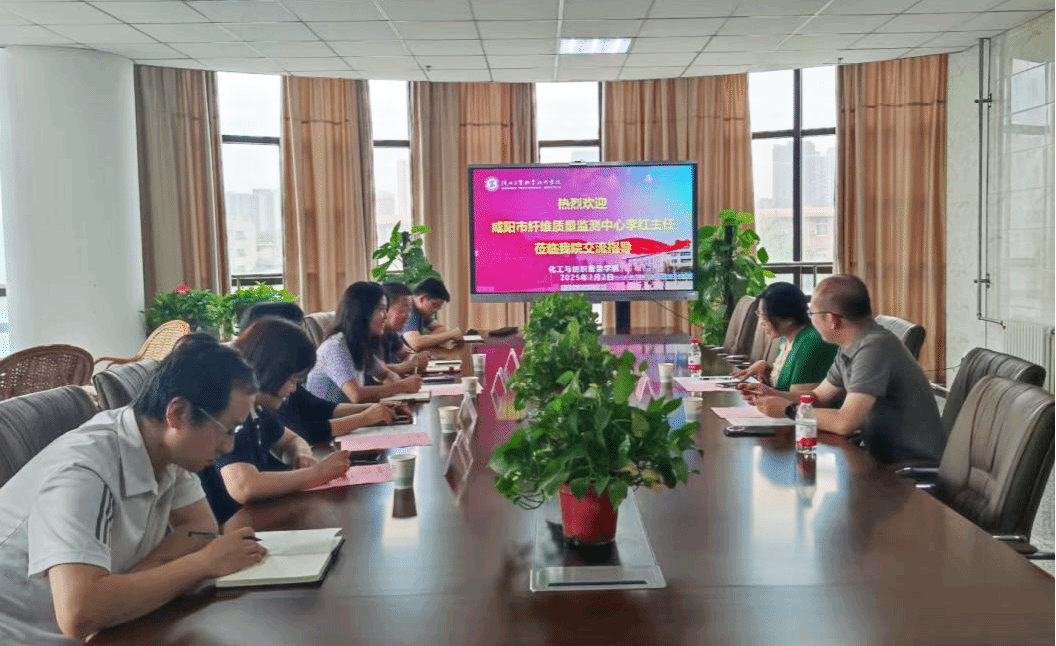 7月2日,咸阳市纤维质量监测中心主任李红、副主任朱文博一行来我校座谈交流。化工与纺织服装学院党总支书记杨修国、尚华教授、质量管理中心贾格维教授等相关专业老师参会。座谈会由化工与纺织服装学院院长刘迪主持。