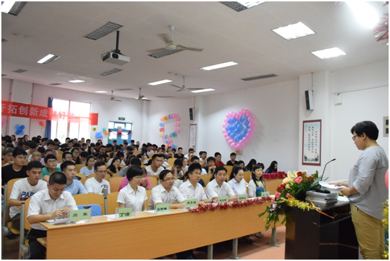 教师代表丁洁对毕业生表达了美好的祝福,她叮嘱同学们要怀感恩之心,在毕业这一刻释怀以往的纠结,坚强面对未来的风雨困苦,永不言弃。信管1501班苏玥、软件1603班曹秦鸣同学先后作为毕业生、在校生代表发言。