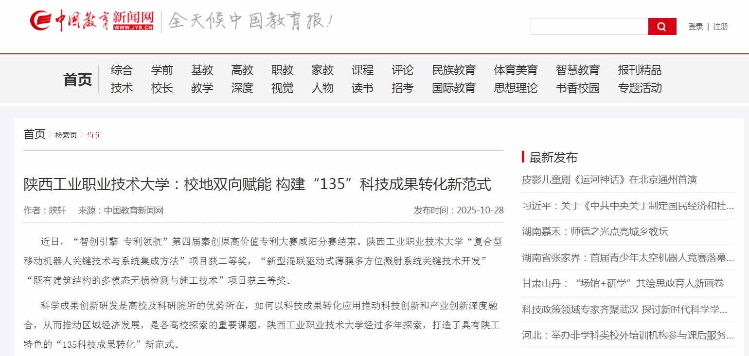 【七五·华章】中国教育华体会(中国)网:陕西工业职业技术大学校地双向赋能 构建“135”科技成果转化新范式