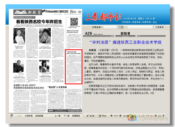 三秦都市报—“审判法庭”搬进陕西工业职业技术学院