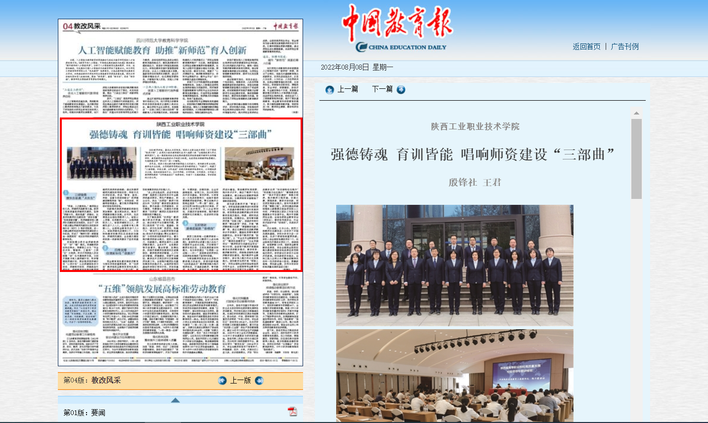 多年来,陕西工院以提升教师教学能力为突破口,面向教与学全过程、教师成长全过程,为实现教师思想政治素质和教学能力“双提升”,构建了“三措强德、四维支撑、五阶递进”的现代职教教师培养体系,以师德培养为主线,依托四类培训平台,为不同年龄、不同阶段、不同需求、不同能力教师群体提供“五阶段递进式”培养培训,打造了一支德技兼备、育训皆能的工匠之师。