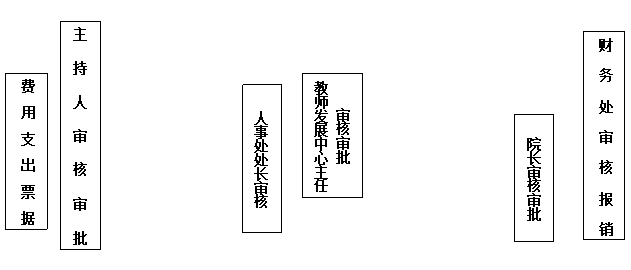 专项工作经费由人事处统一管理,经费使用须严格按照学院财务制度相关规定执行,实行专项列支,专款专用;并按如下报销程序执行: