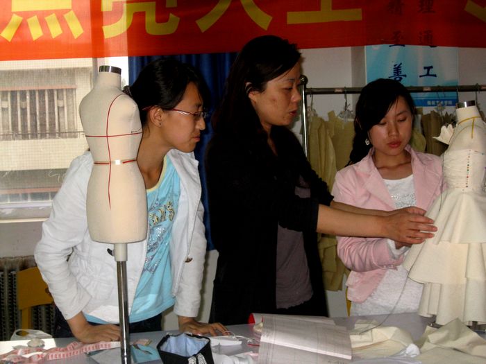 5月18日下午,由服装艺术学院主办、服装工艺教研室承办的 “服装设计制作大赛”作品决赛在笃学A楼服装立体裁剪实训室举行,大赛于4月10日开始全面展开,本次比赛主题为女式夜礼服设计及立裁制作,分为效果图初赛选拔和立裁成品实物决赛两个阶段,初赛阶段共收到299幅参赛作品,评委老师从作品的设计构思和造型表达方面进行初评,共选出了23幅入围效果图。5月9日进入大赛作品制作阶段,选手们在专业指导教师的辅导下,经过十天的精心制作,最终有18件作品参加了本次决赛,最终,高倩雯、同丹丹等同学的作品分别获得一、二、三等奖。本次比赛的获奖作品无论从设计构思和立裁制作手法上均体现出设计者的独具匠心和对专业的热爱之情,也充分展示了同学们的创新能力和实践能力。