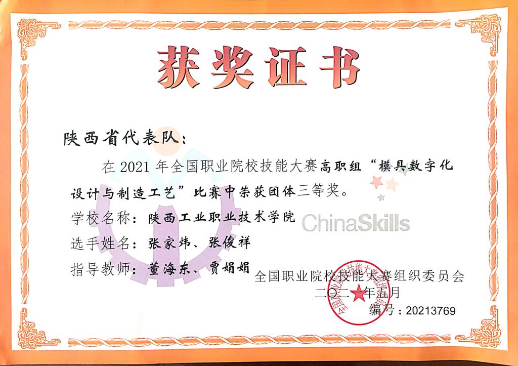 6月16日至17日,2021年全国职业院校技能大赛高职组“模具数字化设计与制造工艺”赛项在山东省济南举行,本次赛项由山东省教育厅、济南市人民政府承办,山东职业学院联合山东辰榜数控装备有限华体会等9家合作企业共同协办。来自全国各地的26支参赛队伍、114名师生参加。我校由材料工程学院董海东、贾娟娟两位老师指导的张家炜、张俊祥二位选手代表陕西省参赛。经过紧张激烈的角逐,最终荣获团体三等奖。