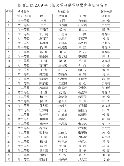 全国大学生数学建模竞赛成绩日前揭晓,我院荣获全国一等奖1项,陕西省一等奖13项、二等奖19项。其中吕海侠老师指导的团队(信息工程学院魏轩、侯旭瑞、李雪)论文被全国竞赛组委会评为优秀论文,并受邀参加2019“高教社杯”全国大学生数学建模竞赛颁奖典礼。2019年我院共选拔出37个队,111名学生参加竞赛,省级奖项及以上获奖率为89.2%,居历年之最。