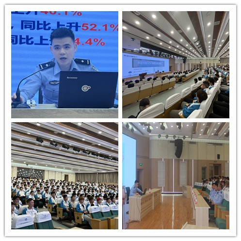 报告会上,渭城公安分局反诈中心四级警长李辉从“电信诈骗简介、电信诈骗高发类型、‘断卡’行动、反电信网络诈骗法、如何防范电信网络诈骗”五个方面进行了防诈反诈专题报告,教育引导广大学生切实提高识骗防骗能力,保护好人身和财产安全。