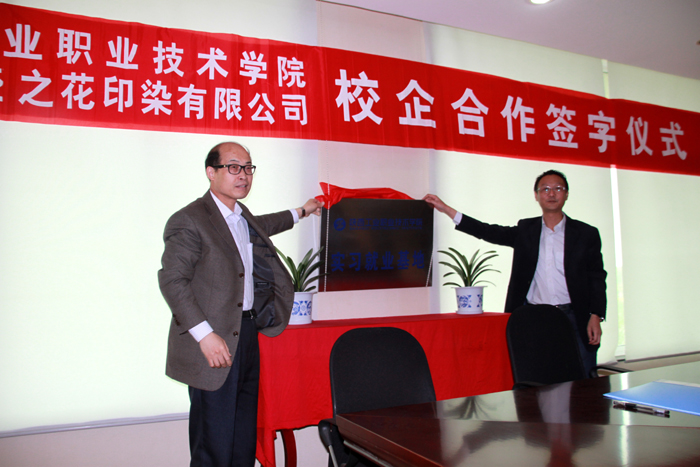 随后,王晓江副院长与施亚斐董事长签署了校企合作协议,共同为“陕西工业职业技术学院实习就业基地”揭牌。最后,王晓江副院长一行参观了企业平网印花、园网印花生产线及计算机分色室、图案室等。