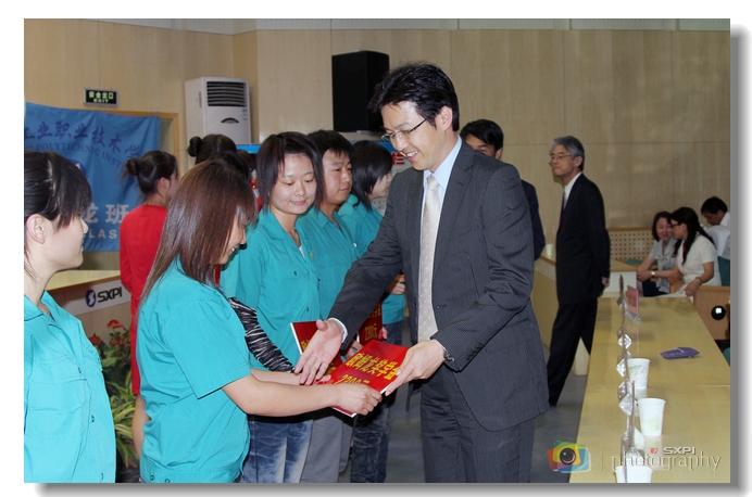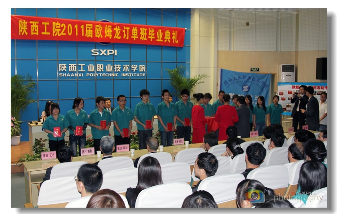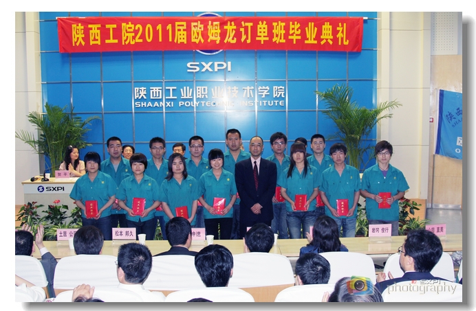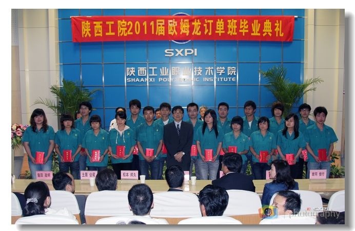 毕业典礼上,我院崔岩院长向前来参加典礼的欧姆龙各级领导表示欢迎,向完成学业的欧姆龙班同学表示祝贺。他说,与欧姆龙华体会合作,是学院已开办的企业冠名订单班中最成功的案例之一,欧姆龙华体会上下始终给予订单班高度关注和鼎力支持,即便在日本国内遭受海啸灾难的时刻依然履行义务,安排吉川先生、后藤先生、严岗先生等60余名专家、技术人员来校讲学,捐助90万元用于奖学金发放和实训条件改善,殷切期望订单班同学们发扬“陕西工院”品牌精神,勤勉为先、脚踏实地,以自己的才智在欧姆龙华体会扎根成长,实现美好理想。
