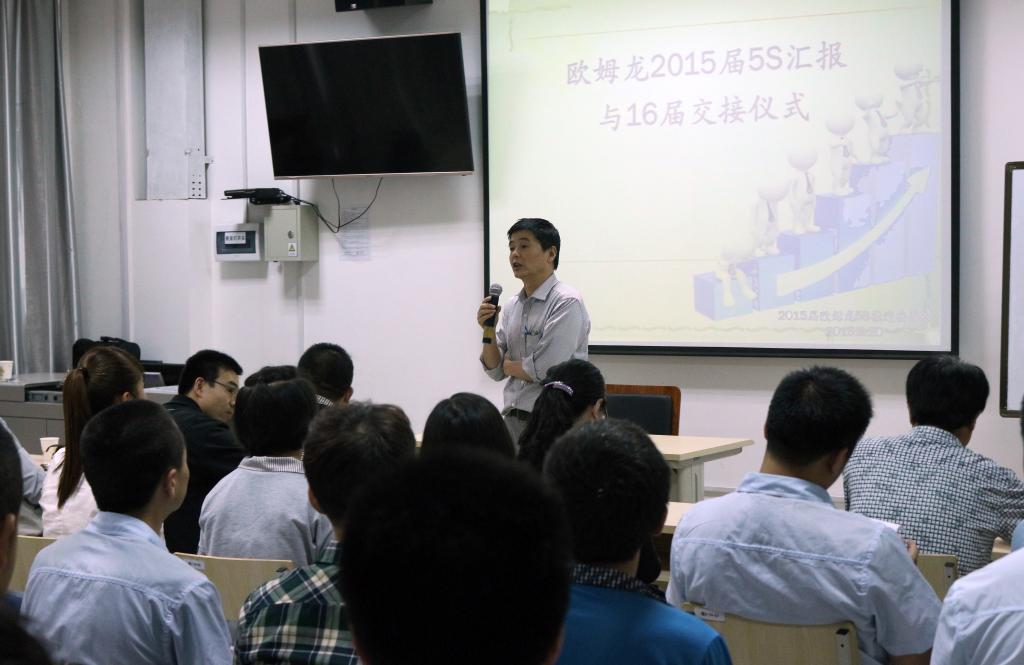 欧姆龙驻校代表、2015届欧姆龙班5S事务局委员长顾建林希望2016届订单班学生务必5S活动工作传承下去,贯彻5S理念、提高综合素养。电气学院工程技术中心主任白洁代表教师发言,希望2016届同学继续发扬5S文化,巩固实训管理成果,为步入职场打下基础。